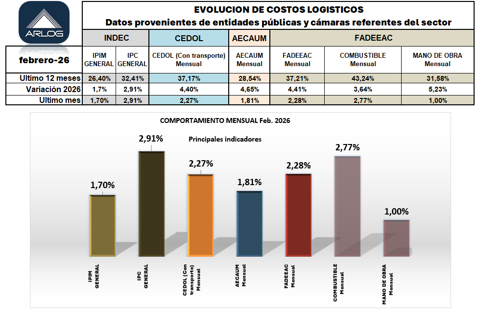 Se trata de un servicio exclusivo para los asociados de ARLOG sobre los indicadores de costos de los principales rubros, a los que recurren hoy los logistas que deben informarse para la toma de decisiones.