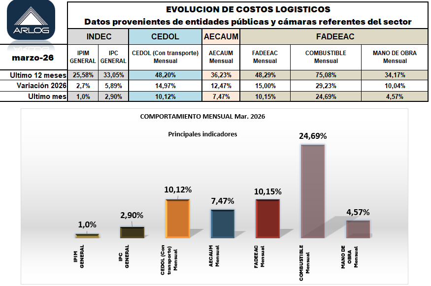 Se trata de un servicio exclusivo para los asociados de ARLOG sobre los indicadores de costos de los principales rubros, a los que recurren hoy los logistas que deben informarse para la toma de decisiones.